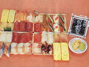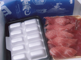 手袋を入れておきますので、軽く握って形をよくしてください。マグロ以外おまかせ盛り合わせもあります。
