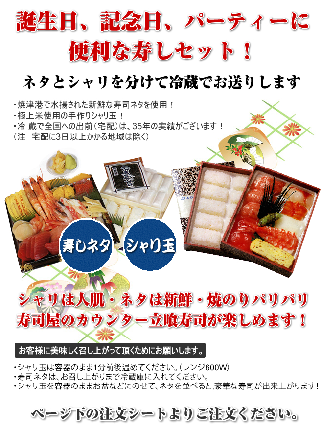 ネタとシャリ玉を分けて冷蔵でお送りします。